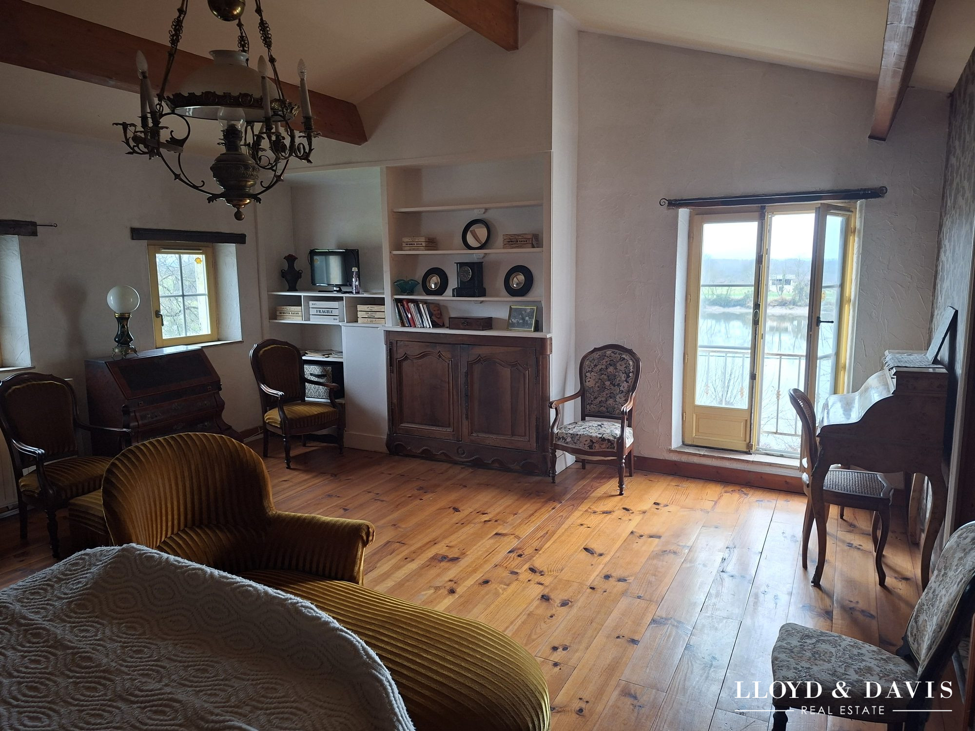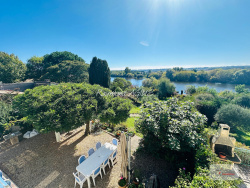 Nichée au coeur du paisible village de Lamothe-Montravel, cette élégante maison de village de 5 chambres offre une vue panoramique à couper le souffle sur la rivière et la campagne environnante. Ancienne Poste du village, la propriété mêle avec charme patrimoine historique et confort moderne. Baignée de lumière naturelle et empreinte d'une atmosphère chaleureuse, la maison est habitable immédiatement. Elle dispose de plusieurs terrasses, d'un jardin privé, d'un grand garage aménageable ainsi que d'un quai en béton privé -- un atout rare et recherché pour les amoureux de la vie au bord de l'eau. Le rez-de-chaussée a été conçu pour une vie conviviale et ouverte, avec de larges baies vitrées qui inondent les pièces de lumière tout en offrant une vue directe sur la rivière. Le spacieux salon et la salle à manger s'ouvrent sur la terrasse et le jardin privatifs, tandis que la grande cuisine avec îlot central est idéale pour cuisiner et recevoir en toute convivialité. Ce niveau comprend également deux chambres (dont une avec salle d'eau privative), une salle de bain et une buanderie. À l'étage, on trouve trois chambres supplémentaires, une salle de bain, un WC séparé ainsi qu'un bureau lumineux donnant directement sur une vaste terrasse panoramique. Cet espace est parfait pour savourer le calme des matinées ou admirer les couchers de soleil sur la rivière, la campagne vallonnée et le clocher du village. Le jardin est un véritable havre de paix, avec une belle terrasse pour profiter pleinement des repas d'été et des moments de détente entre amis ou en famille. La pelouse en pente douce descend directement jusqu'à la berge de la rivière, où se trouve le quai en béton privé -- idéal pour une petite embarcation ou simplement pour profiter de la tranquillité des lieux. La terrasse à l'étage offre un point de vue unique et apaisant sur le paysage environnant. La maison est raccordée au chauffage central avec gaz de ville, poêle à bois, reliée au tout-à-l'égout et à la fibre optique, offrant tout le confort moderne dans un cadre rural charmant.. Un grand garage offre de nombreuses possibilités d'aménagement complémentaire selon les envies. Le village de Lamothe-Montravel offre toutes les commodités à pied -- boulangerie, boucherie, tabac et centre médical. La gare avec liaisons directes vers Bordeaux se trouve à moins de 5 km. La propriété est idéalement située entre Bergerac et Libourne, à seulement 15 km de Saint-Émilion et à moins d'une heure de Bordeaux. Bien plus qu'une maison, cette propriété incarne un art de vivre au bord de la rivière, où histoire, nature et confort se marient harmonieusement. Les propriétés ont une surface habitable de 276 m2 : Rez-de-chaussée :