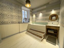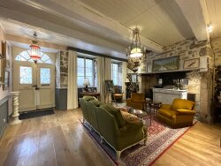 Maison au coeur historique de Mur de Barrez offrant plus de 200m² habitable. Renovée avec goût. Trois chambres, deux salles de bains, une salle d'eau, deux séjours, une cuisine et un patio privé. Greniers aménageables. Au rez de chaussée, un garage/chaufferie de 36m² (accès difficile pour voiture car la ruelle derrière ne fait que 2.5m de large) et une cave de 31m². La porte d'entrée donne sur un salon de 35m², en suite on trouve une grande pièce à vivre avec une cuisine équipée et un séjour, le tout faisant plus de 43m² avec un hauteur sous plafond de 3m - lumineux avec des beaux volumes. Il y a en plus un petit buanderie et un wc. Du couloir on accède un patio privé et accueillant de 23m². Au premier étage, deux grandes chambres de 32m² et 20m², une avec salle de bains en suite, l'autre avec une salle d'eau avec douche. Un coin de détente de 6m² complète l'étage. Le deuxième étage offre une chambre de 34m² et une salle de bains, ainsi qu'un espace grenier améageable de 44m². Au troisième étage un deuxième grenier mansardé de 26m² au sol, également aménageable. Dans un position élevé le côté sud de la maison offre des très belles vues sur la campagne Aveyronnaise. Un petit jardinet de 138m² non attenant et pentu, mais avec des belles vues, attend d'être cultiver. La maison est chauffée par des pompes à chaleur revérsible. Assainissement collective. Vendu avec meubles. Remarquable pour son histoire, cette belle demeure se trouve dans un village vivant et animé avec tout commerces, services, restaurants, écoles et centre medical. Proche de l'Aubrac, 45 minutes d'Aurillac. Les informations sur les risques auxquels ce bien est exposé sont disponibles sur le site 'Géorisques' www.georisques.gouv.fr