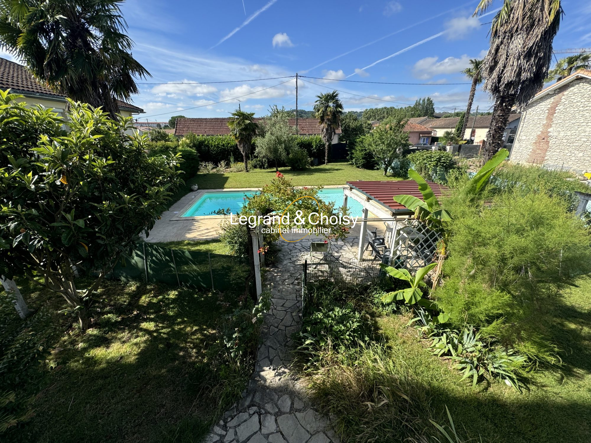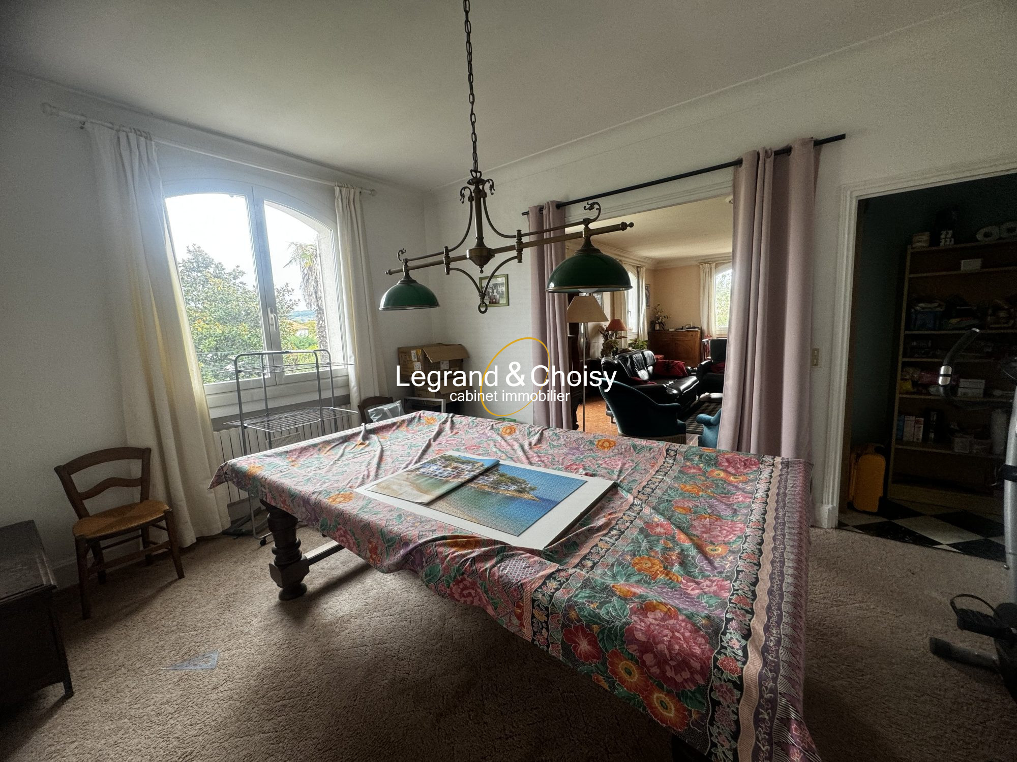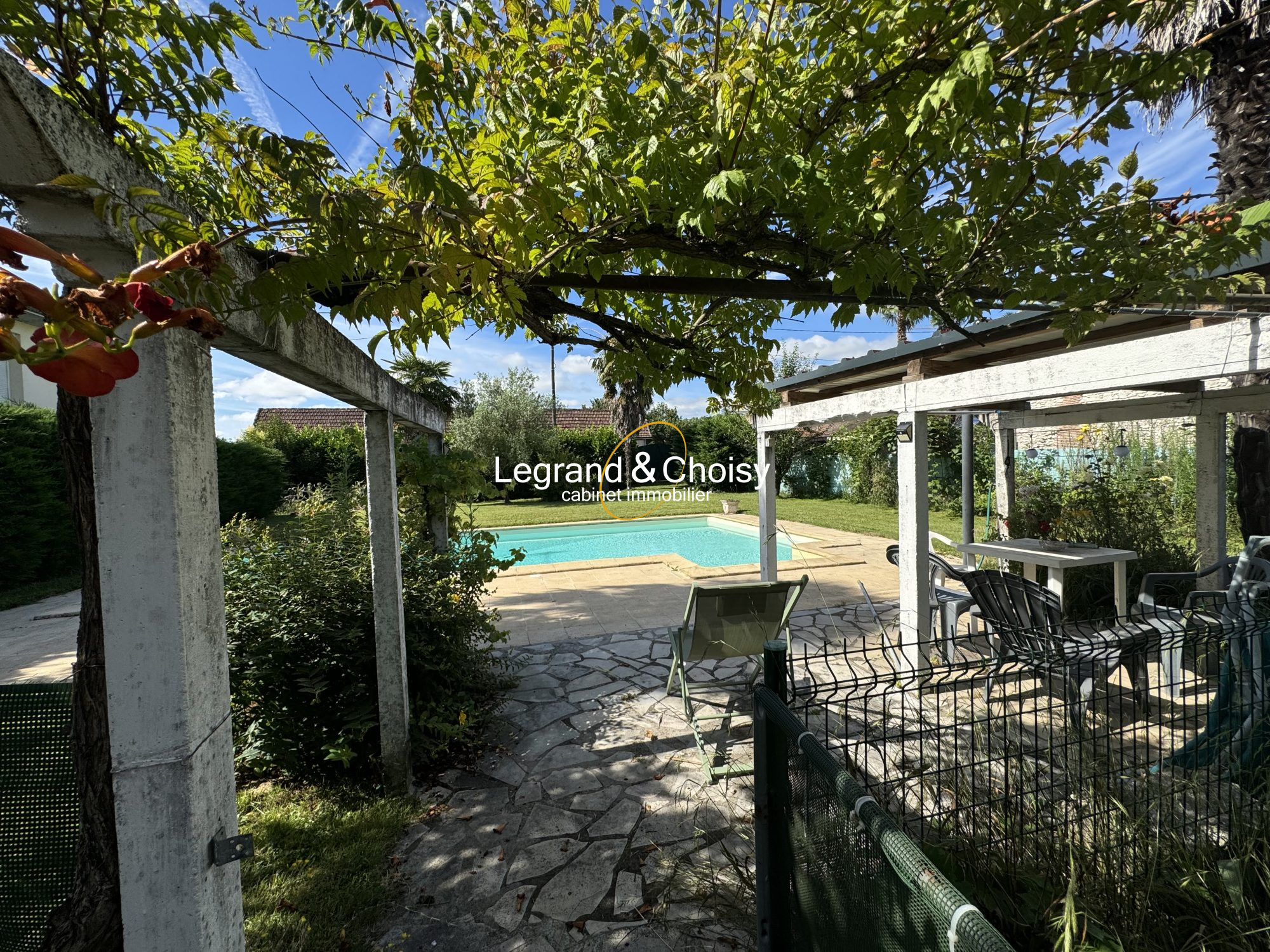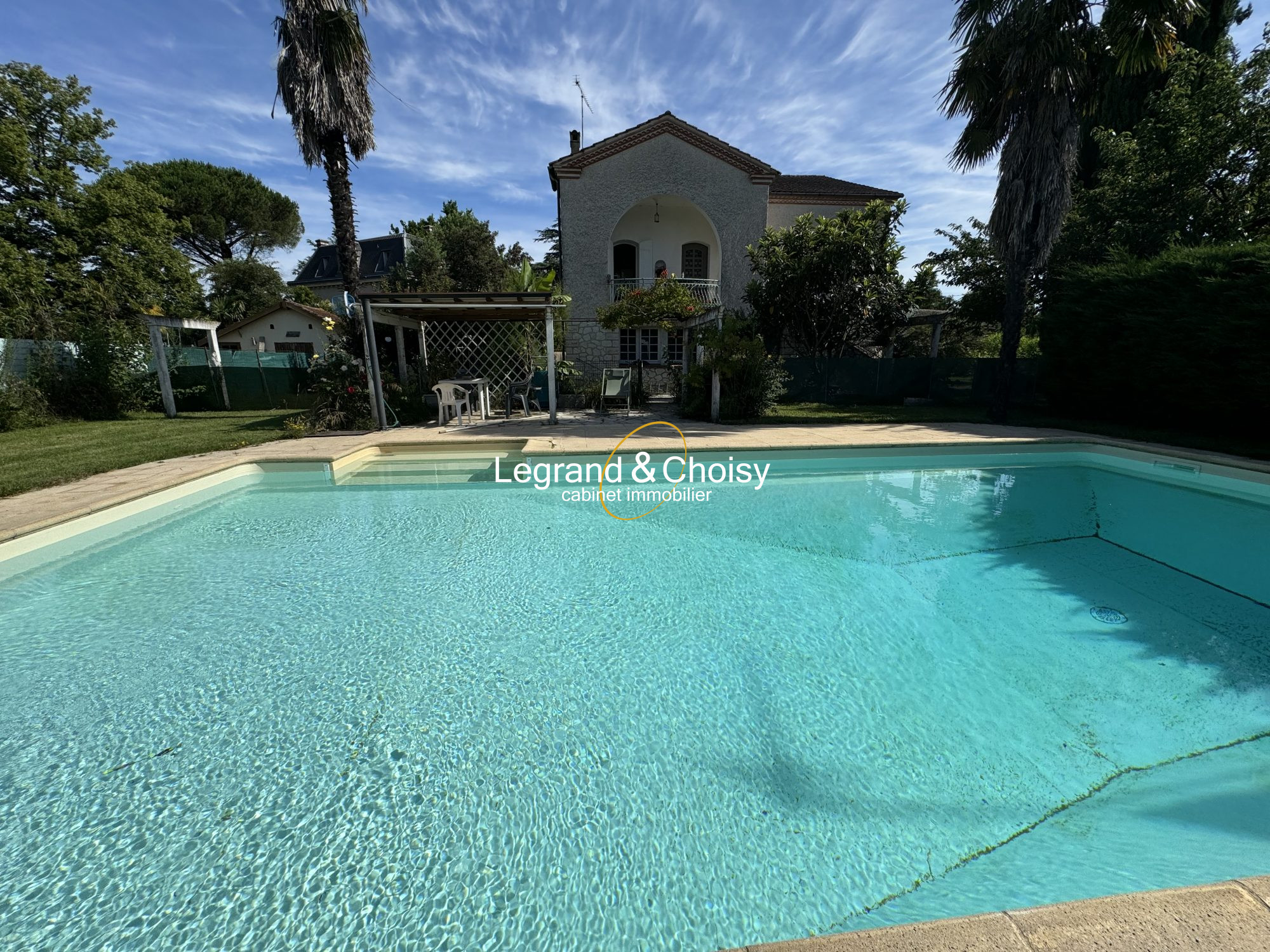 Une entrée dessert la pièce de vie , un bureau, une chambre , une salle de bain et le grand escalier qui mène aux chambres ,un toilette avec lave main se trouve au même niveau, une cuisine équipée fermée, un cellier, un garage, une cave . Nous prenons l'escalier qui nous permet d'accéder aux quatre chambres dont une avec une véranda, une salle de bain et douche, un wc séparé., nous prenons le couloir et nous sommes sur le grand balcon qui a vue sur la piscine et le jardin. Derrière la maison se trouve une terrasse, la piscine , un jardin arboré une maisonnette à rénover entièrement, un carport, une allée et un portail motorisé. la maison a une alarme. Sans aucun vis à vis. Le prix est de 225500 euros DPE C GES C Montant estimé des dépenses annuelles d'énergie pour un usage standard entre 1150 EUROS et 1630 euros indexées aux années 2021, 2022 et 2023