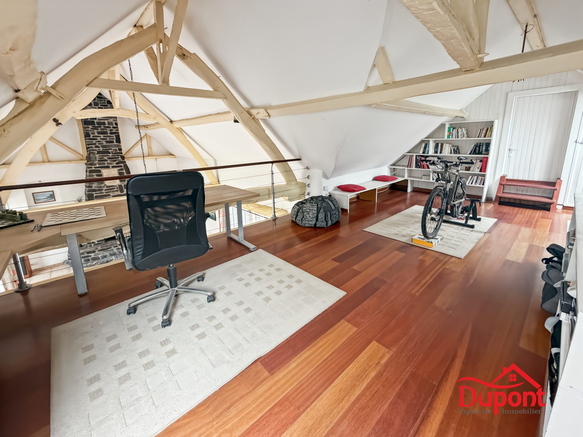 Au rez-de-chaussée En rentrant, on découvre un sas d'entrée de 10m2.Dans la continuité, on retrouve le salon-séjour lumineux avec une belle hauteur sous plafond et une magnifique cheminée d'époquée en pierre. Cette pièce donne directement accès à la terrasse. et jardin. On retrouve ensuite une cuisine de 19m2, une salle de bain, une buanderie (partie refaite en 2024) , un bureau de 14m2 et 2 WC indépendants.