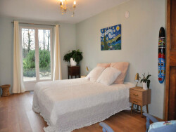 À l'étage, une cinquième chambre aménagée en suite parentale offre de beaux volumes et une vue panoramique sur la campagne.
