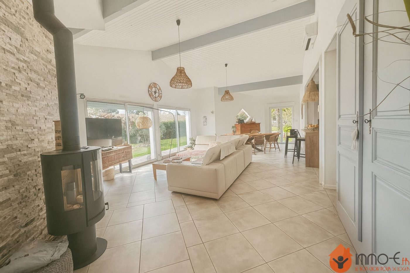 SOULAC SUR MER : Villa de 190 m² sur 1700 m² de terrain boisé, au calme, proche des plages et des pistes cyclables. Cette maison très lumineuse, dispose de quatre suites parentales ( dont une avec dressing, bains, WC et douche), entrée, séjour cathédrale, cuisine indépendante équipée, cellier, une cinquième chambre et un WC indépendant. Idéale pour une grande famille en résidence principale ou secondaire. Fort potentiel locatif, chaque suite peut être accessible par l' extérieur pour des chambres d'hôtes par exemple.