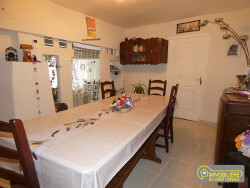 Maison mitoyenne de bourg comprenant: Au rez-de-chaussée : entrée, cuisine avec cheminée, séjour, salon, dégagement avec dressing, wc avec lavabo, réserve, grenier aménagé en rez-de jardin A l'étage : couloir, trois chambres, salle de bains-wc Garage en parpaing couvert en bac acier de 36 m², terrain de 440 m² Panneaux solaires Gaz de ville, tout à l'égout
