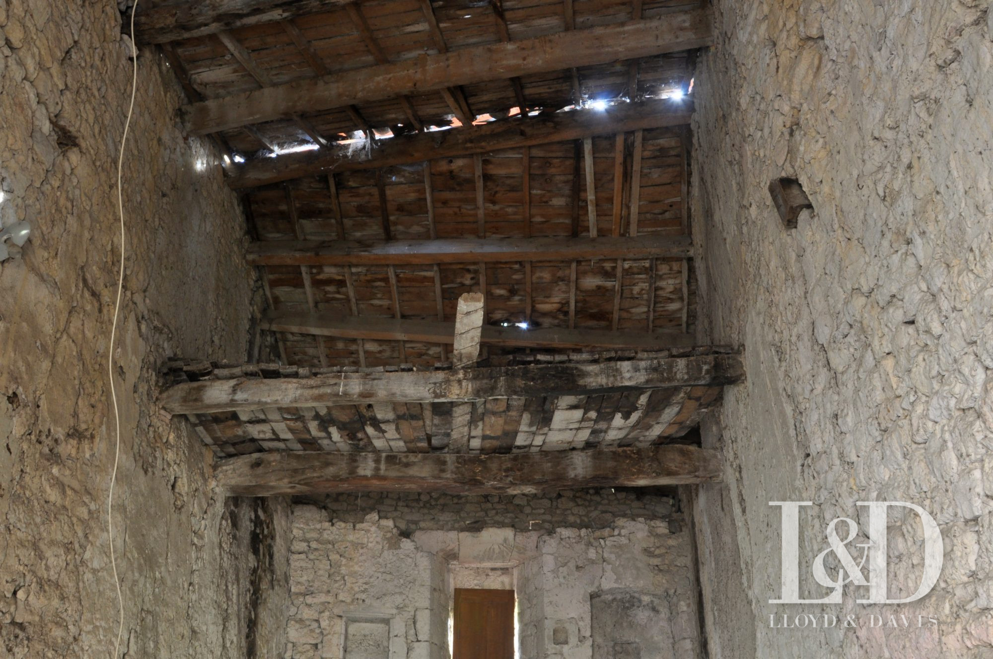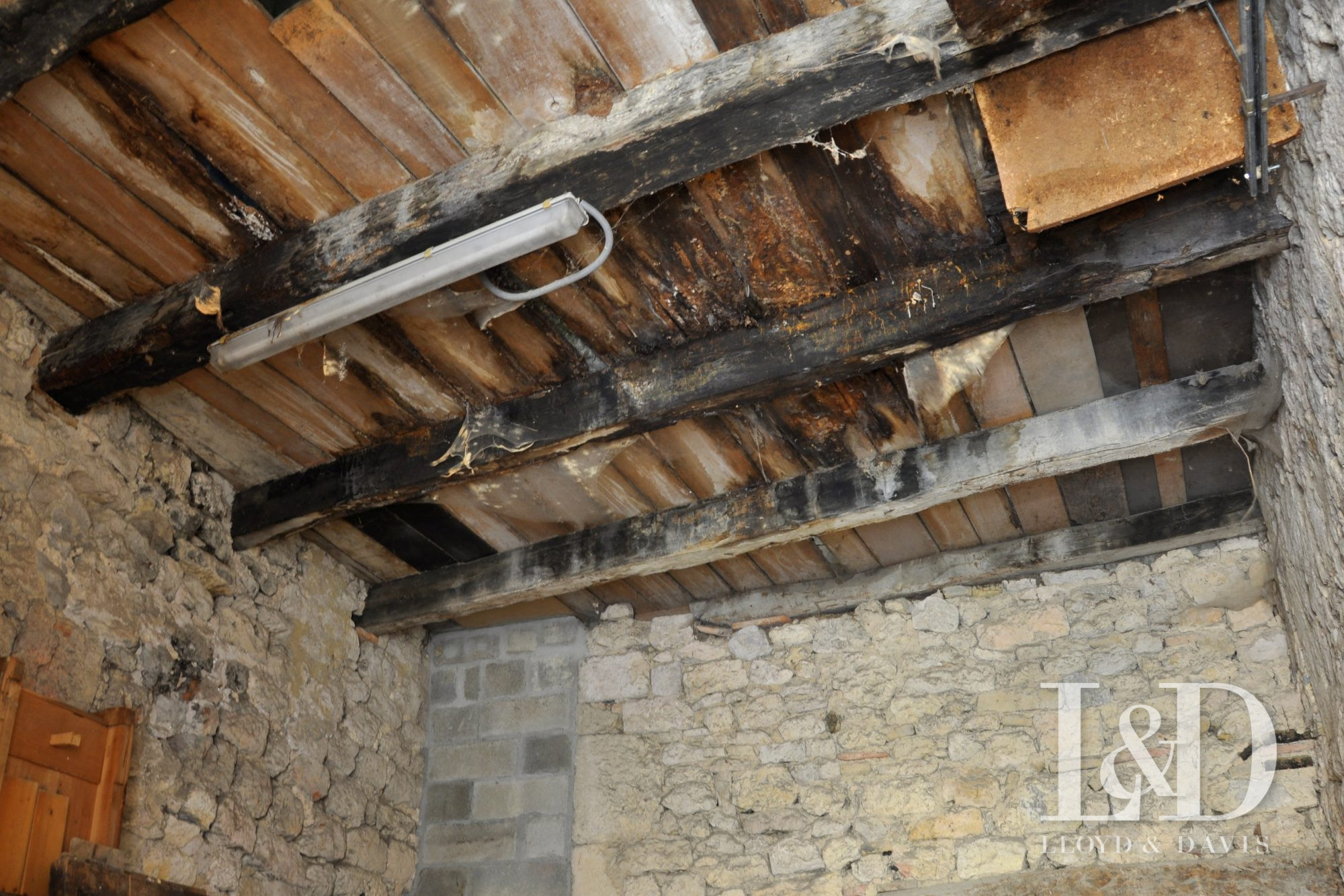 Charme de l'ancien avec belles poutres et structure saine.