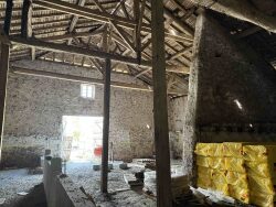 CU opérationnel accepté. A l'intérieur de la grange les fondations et le terrassement ont été réalisés, électricité et eau en service - Remaniement de toiture à envisager - Un appentis attenant peut servir de stockage ou garage. - Assainissement individuel à prévoir à prévoir. Ce bien est mitoyen avec une autre grange. Permis de construire accepté en 2025