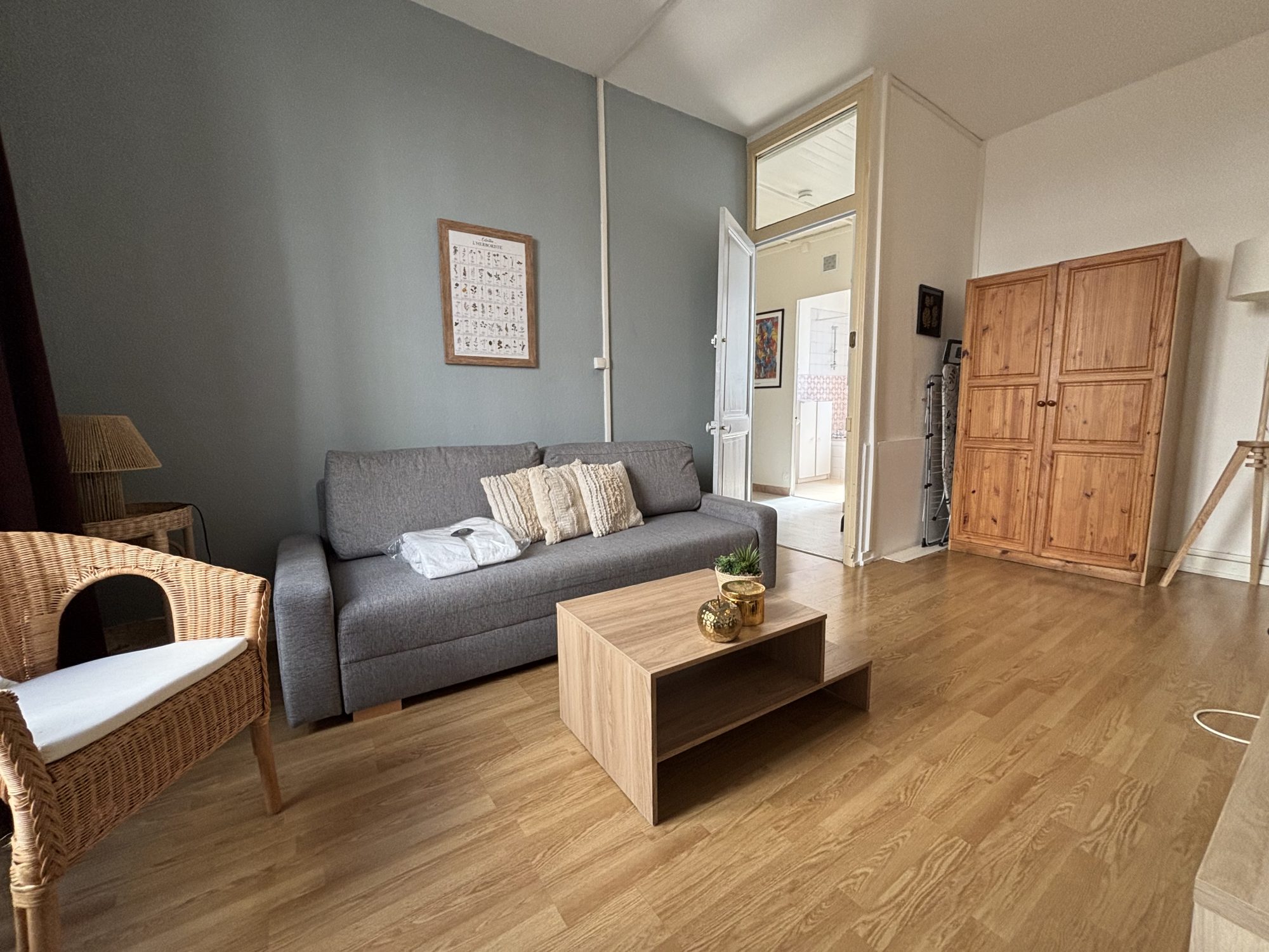 Chaleureux et fonctionnel : il se compose d'une pièce de vie de 18,74m2 avec parquet bois et cuisine aménagée équipée, une chambre indépendante. La salle d'eau est spacieuse avec de bonnes prestations : douche carrelée, meuble vasque et WC suspendus.