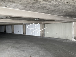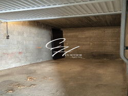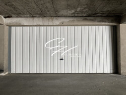 Garage spacieux, situé en sous-sol, avec porte basculante.