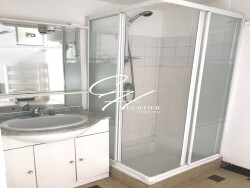 Les WC et la salle de bain sont séparés, cette dernière est équipée d'une douche d'un meuble vasque, d'un miroir et d'un branchement pour machine à laver ainsi qu'un étendoir à linge.