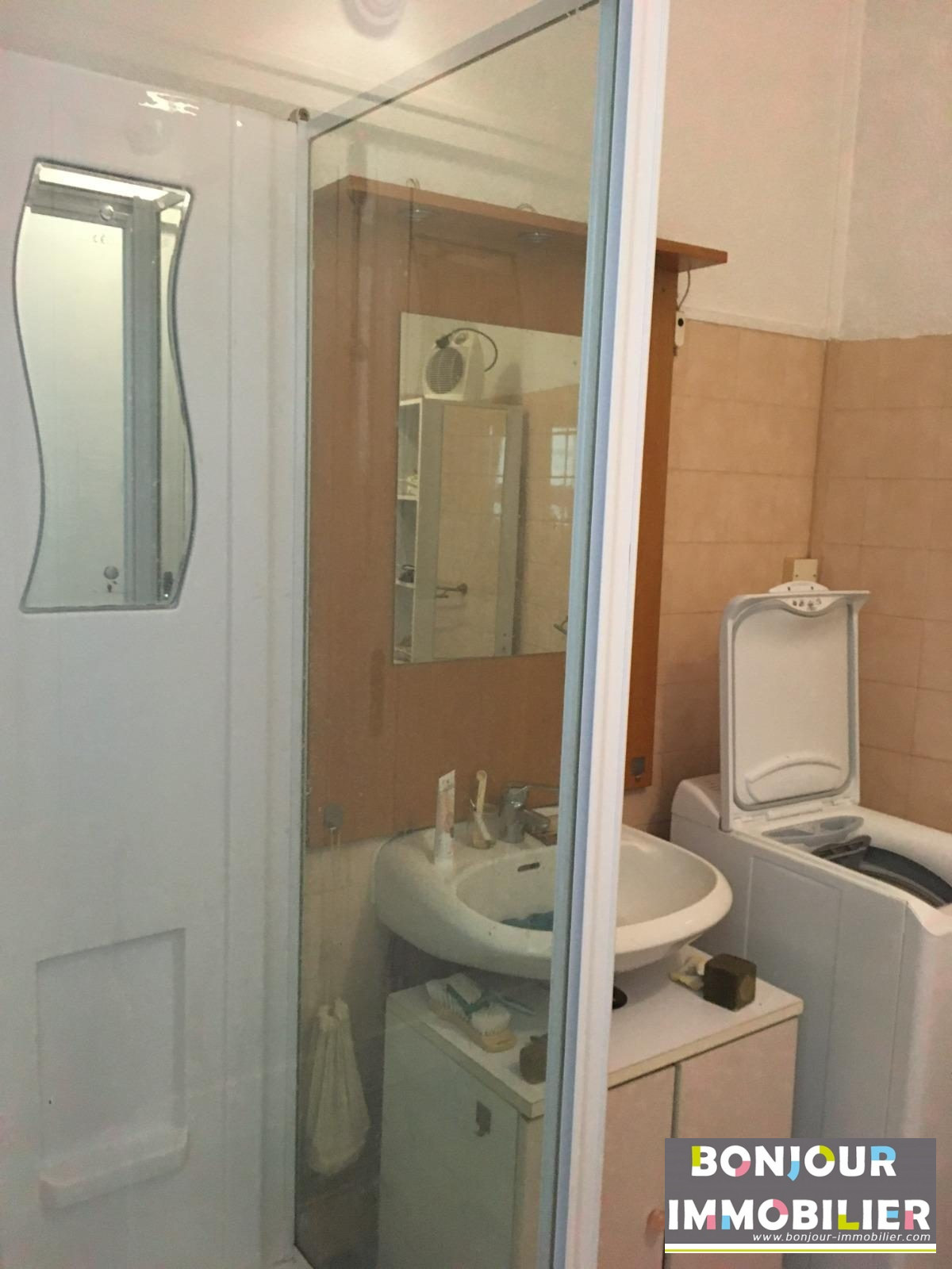 Les WC et la salle de bain sont séparés, cette dernière est équipée d'une douche d'un meuble vasque, d'un miroir et d'un branchement pour machine à laver ainsi qu'un étendoir à linge.