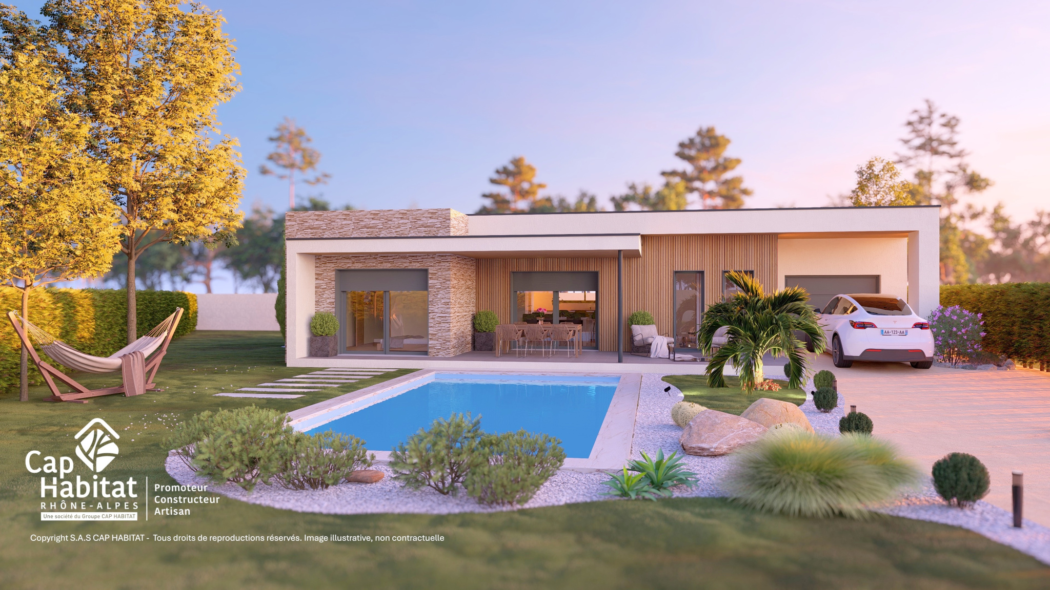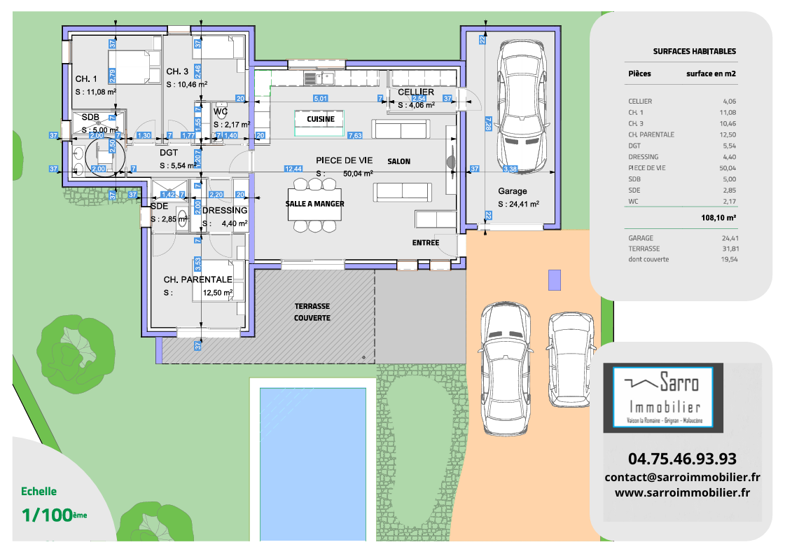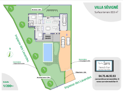 GRIGNAN - VILLA SEVIGNE ***RESERVEE*** Située à l'orée de l'un des plus beaux villages de France,au coeur d'un quartier résidentiel paisible, au milieu des chênes et des lavandes, villa de standing de plain-pied d'une surface habitable de 108 m2 sur un terrain paysager et clos de 833m2 avec piscine. Cette magnifique villa haut de gamme connectée et personnalisable comprend: Séjour/cuisine 50m2 , 1 cellier, toilettes, 1 suite parentale avec dressing et SDE, 2 chambres, 1 SDB , 1 garage,1 terrasse et 1 terrasse couverte. Piscine 8m x 4m, prestations haut de gamme, chauffage gainable par pompe à chaleur Air/Air (économique et écologique), équipement domotique SOMFY dernière génération (portail électrique , volets roulants électriques, alarme , visiophone,etc...), chauffe-eau thermodynamique. Possibilité de personnaliser à souhait l'aménagement et l'organisation des pièces - De nombreuses options sont possibles ( poêle, cheminée..etc) Vente en VEFA - FRAIS DE NOTAIRE REDUITS ! Prix et délais de Livraison (2ème trimestre 2027) garantis - Certification RE 2020.