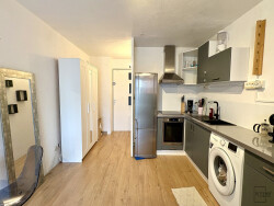 Il se compose d'un séjour lumineux d'environ 23 m² avec coin cuisine aménagé et équipé (plaque à induction, four, hotte, réfrigérateur, machine à laver), un espace salon - nuit de 4 m², une salle d'eau avec toilette entièrement rénovée, et un balcon de 3 m² donnant sur l'intérieur de la résidence, exposé Sud-Ouest.