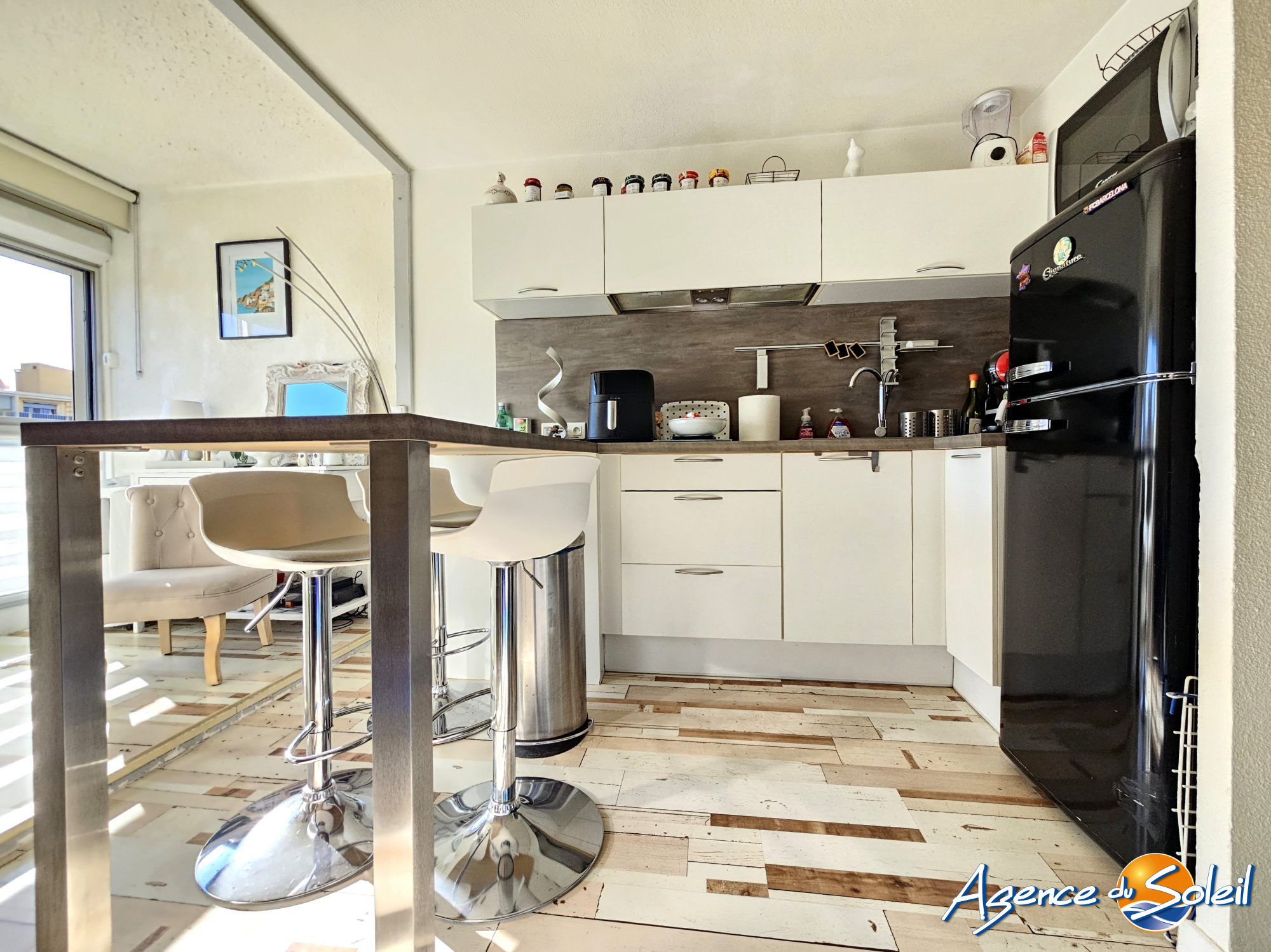 Spacieux studio de 27.02 m², au troisième et dernier étage d'une résidence avec gardien 24/24h, offrant un excellent niveau de confort. Séjour avec cuisine aménagée et entièrement équipée, espace salon-nuit, salle d'eau avec toilette et un balcon de 3 m², exposé Sud-Ouest. Rénovation récente, volets électriques, huisseries PVC doubles vitrages, fibre optique. Accès direct de la résidence au Quai de la Tramontane. Contactez Carla FABREGAT au 04 48 90 01 50.