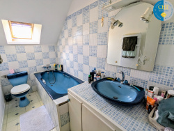 Au deuxième étage : un dégagement desservant une chambre, deux bureaux et une salle de bains avec WC.