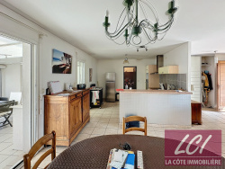 Dans un secteur calme et résidentiel de Gujan-Mestras, à 1 km des commerces, maison contemporaine de 2005 bien implantée sur un terrain de 740m2. Séjour spacieux bien exposé (triple exposition) avec poêle à bois et climatisation réversible, ouvert sur la cuisine (avec cellier) et une véranda de 26m2. L'espace nuit dessert 4 chambres (dont une avec salle d'eau et possibilité wc) et un garage attenant aménagé. Terrain piscinable et sans vis-à-vis avec garage indépendant. Classe énergie : C. Honoraires inclus 3,96% à charge acquéreur. Les informations sur les risques auxquels ce bien est exposé sont disponibles sur le site Géorisques : www.georisques.gouv.fr