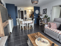 Appartement situé au 1er étage, comprenant une entrée, une cuisine équipée ouverte sur le séjour, une chambre, une salle de bains et un WC séparé. Un balcon de 10 m2 sans vis-à-vis et un garage viennent compléter ce bien.