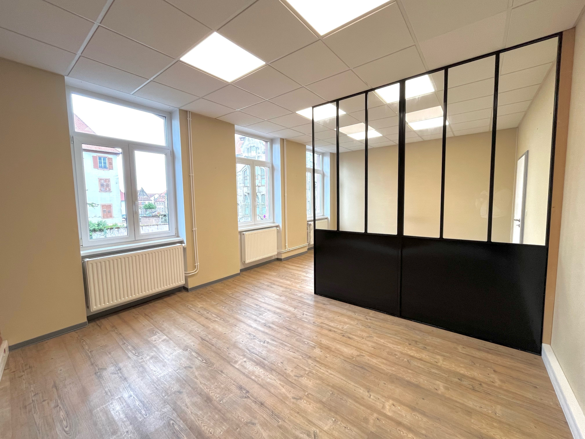 Local professionnel avec vitrines, situé au centre de HAGUENAU, idéal pour une activité bureautique ou médicale. Ce local comprend un hall d'accueil de 15 m2, deux bureaux de 14,78 m2 et 49,35 m2 et un espace de stockage. Le local comprend 2 places de parking privatives.