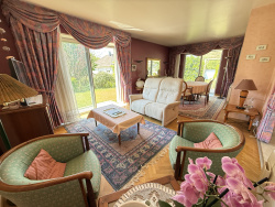 Un grand séjour salle à manger baigné de lumière grâce aux grandes baies vitrées donnant sur le jardin