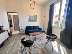 Appartement atypique et plein de charme situé à la proximité du centre historique. Ce haut de villa bénéficie d'une entrée indépendante et un joli jardin au calme. Il est composé d'un séjour avec une vue panoramique sur les montagnes, d'une cuisine indépendante, de 2 chambres spacieuses avec placards, d'un dressing, d'une salle de bains avec wc. Belles prestations, hauteur sous-plafonds, matériaux et équipement de qualité. Rare sur le marché. Pas de charges de copropriété. A visiter sans tarder. DPE : D/ GES : B. Estimation des coûts annuels d'énergie entre 1290 EUR et 1790 EUR. Copropriété de 2 lots. Pas de procédures en cours. Honoraires à la charge du vendeur. Les informations sur les risques auxquels ce bien est exposé sont disponibles sur le site Géorisques : www.georisques.gouv.fr