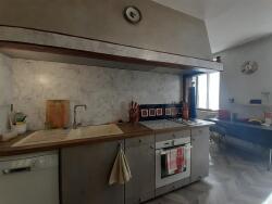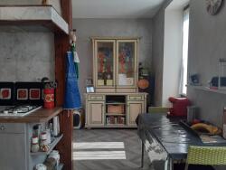 1er étage: grand séjour 31 m2 avec insert, cuisine équipée avec arrière cuisine donnant accès sur une terrasse abritée 21 m2 équipée d'un barbecue, chambre, salle d'eau, WC.