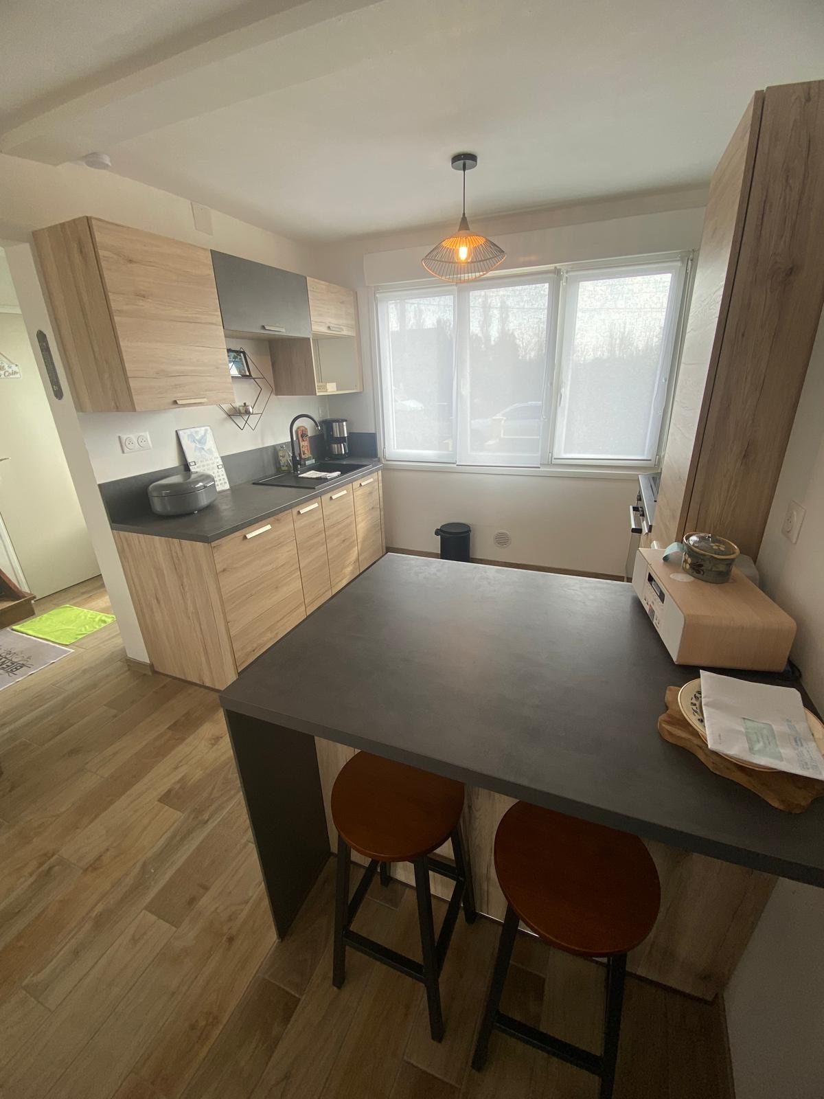 offre un hall d'entrée ,un salon séjour lumineux , une belle cuisine équipée, un wc