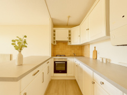 L'appartement bénéficie d'un calme total, sans vis-à-vis direct, et s'ouvre sur une agréable terrasse privative exposée Nord-Est, avec une vue dégagée sur la verdure.