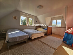 Charmante maison normande avec dépendance sur 3,18 ha à 15 minutes de Pont-l'Évêque Alain GUYONY vous propose cette belle propriété normande, idéale pour les amoureux de la nature et des chevaux, située à seulement 15 minutes de Pont-l'Évêque. Implantée sur un terrain de 3,18 hectares, en grande partie destiné à l'herbage, cette demeure bénéficie d'un cadre calme et verdoyant, à l'écart d'un bourg avec commerces, sans être isolée. La maison principale offre au rez-de-chaussée : Une entrée desservant une cuisine aménagée et équipée ouverte sur la salle à manger Un salon chaleureux avec cheminée insert Deux chambres, dont une avec salle d'eau Une salle de bains supplémentaire, un WC et une buanderie À l'étage, vous trouverez : Deux chambres supplémentaires, dont une avec dressing et salle d'eau Un WC indépendant La dépendance comprend : Au rez-de-chaussée : un atelier, une cave et un espace jacuzzi À l'étage : une entrée, une pièce de vie lumineuse avec kitchenette, une chambre, une salle d'eau et un WC Cet ensemble allie authenticité normande et confort moderne, parfait pour ceux qui recherchent un cadre paisible et champêtre, tout en restant proche des commodités et à quelques minutes seulement de Pont-l'Évêque. Conformément à l'article L. 561-5 du Code monétaire et financier, une copie de la pièce d'identité de chaque visiteur sera demandée avant toute visite.