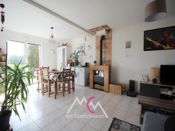 En un impasse, dans un environnement calme et verdoyant, découvrez cette superbe maison familiale construite en 2007, offrant de beaux volumes, une belle luminosité et une vue dégagée sur les champs. L'entrée donne sur une pièce de vie comprenant un salon-séjour avec un poêle à bois et sa cuisine aménagée et équipée, ouvert sur une terrasse exposée Sud/Est avec vue dégagée, un véritable atout pour profiter pleinement des journées ensoleillées et des moments en famille ou entre amis. Le rez-de-chaussée offre également une vie de plain-pied grâce aux deux chambres disposant de placard, ainsi qu'une salle de bain avec douche, et un wc. À l'étage, une agréable mezzanine créée un espace supplémentaire idéal pour un bureau ou un espace détente, et dessert deux chambres avec rangements, ainsi qu'une salle d'eau avec wc. À l'extérieur, vous apprécierez la terrasse conviviale, l'abri de jardin pratique, et surtout le terrain clos de 700 m2, sans vis-à-vis, avec une superbe vue dégagée sur la nature. Calme et sérénité assuré !
