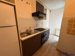 Dans un immeuble à proximité des commodités, cet appartement avec balcon se compose de : une entrée, une pièce de vie avec une cuisine ouverte, trois chambres, une salle de bains ,WC. Terrasse.