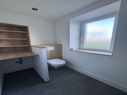 HILLION, joile maison en pierres comprenant: cuisine américaine équipée avec coin repas et cheminée, une chambre, belle salle d'eau avec w.c, à l'étage: une très grande chambre. Dépendance attenante, chauffage électrique, terrasse Libre de suite