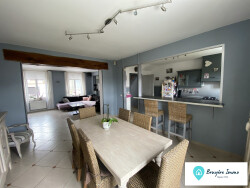 Maison semi-individuelle sans travaux comprenant entrée, cuisine, salon, salle à manger, WC pour le rez-de-chaussée. A l'étage un palier desservant 3 chambres, salle d'eau, WC. Grenier, garage, cave, buanderie, cuisine d'été, terrain.