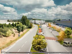 ...Trois niveaux, dont deux avec façade en top visibilité depuis la route et de l'autre côté des...