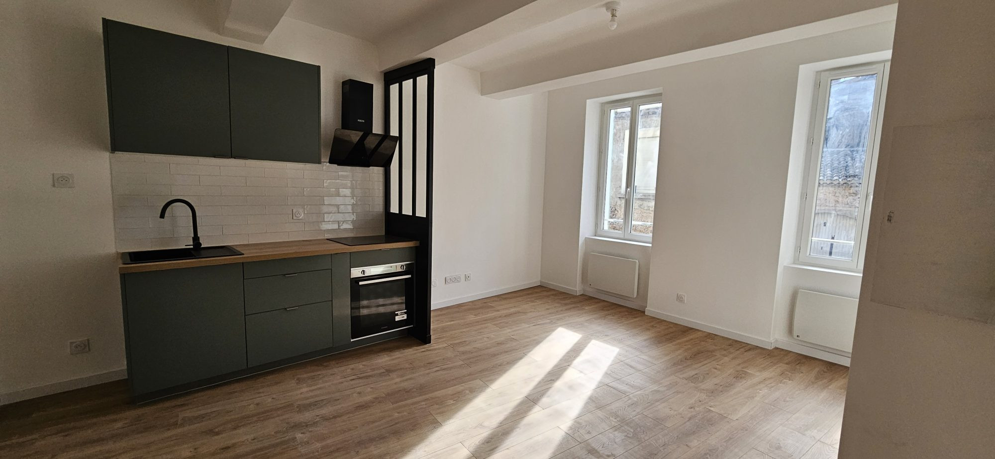HYERES, rue de Verdun. Appartement T2 de 27,19 m2 en rez-de-chaussée, comprenant : entrée / dégagement, séjour avec coin cuisine aménagé et équipé (plaque de cuisson vitrocéramique, hotte électrique, lave-linge, four électrique, four micro-ondes, réfrigérateur top encastré), chambre, salle d'eau avec wc. LIBRE. LOYER = 638,00 euros (dont 8,00 euros de provision de charges, comprenant : la TEOM). DÉPÔT DE GARANTIE = 630,00 euros. HONORAIRES D'AGENCE = 353,47 euros (dont 81,57 euros pour la réalisation de l'état des lieux entrant). AGENCE LOGIS SERVICE HYERES 04.94.12.36.10 (Nous contacter par téléphone pour toute visite).