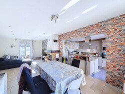 Dès l'entrée, vous découvrez un bel espace de vie de 38 m² réunissant séjour et salle à manger. Cet espace, lumineux et chaleureux, bénéficie d'une exposition plein sud. La cuisine américaine, aménagée et entièrement équipée, s'ouvre sur la pièce principale. L'ensemble donne accès à une grande terrasse. La maison propose trois chambres confortables dont une avec placard intégré, parfaitement adaptées à une vie de famille. Une salle de bains et un WC indépendant complète l'espace nuit.