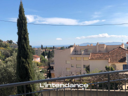 HYERES PROXIMITE CENTRE VILLE, COMMERCES ET ECOLES - Belle maison de ville entièrement rénovée offrant une superficie totale utile de 132 m2 répartie sur 2 niveaux. En rez-de-jardin, un vaste double séjour ouvrant sur grande terrasse Sud-Est avec vue dégagée et aperçu mer, cuisine américaine meublée, équipée, une chambre, une salle de bains avec baignoire et douche à l'italienne, wc. A l'étage deux chambres dont une très grande avec rangements, une salle d'eau avec wc, le tout aménagé avec plafonds en rampants. Un garage/remise. L'ensemble implanté sur un terrain d'environ 326 m2.