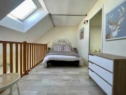 Appartement duplex de type 2 bis de 53m2 idéalement situé Cours Guédon dans une résidence de standing, hyper centre, arboré, sans vis-à-vis, très calme, grande baie vitrée vue panoramique, avec balcon. A 80 mètres à pied de la grande plage du Remblai des Sables d'Olonne. A 5 minutes à pied de la gare. Soleil entrant en fin d'après-midi. Appartement dans une résidence année 1995 avec ascenseur au 5ème étage. Accès code/SAS/Interphone Visio (sécurisé). Composé d'une entrée avec grand placard intégré, une salle d'eau douche/ WC, un salon/séjour salle à manger avec cuisine aménagée/équipée. A l'étage une chambre ouverte sur mezzanine, ainsi qu'une seconde chambre avec placard intégré, salle de bain et WC (2 velux). Possibilité 6 couchages. Etat impeccable. Beaucoup de charme. + 1 cave. Bien en copropriété de 87 lots. Quote-part du budget prévisionnel des charges annuelles courantes : 784.96 TTC / an. CLASSE ENERGIE : D - CLASSE CLIMAT : B. Montant estimé des dépenses annuelles d'énergie pour un usage standard : entre 889 et 1 203 TTC/an. Date de référence des prix de l'énergie pour établir cette estimation : 8 octobre 2021. Les informations sur les risques auxquels ce bien est exposé sont disponibles sur le site Géorisques : www.georisques.gouv.fr