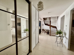 EXCLUSIVITE IMMOSMART Voici un très bel appartement de type 5 de 103m2 avec balcon et terrasse et vendu avec son garage et sa place de parking qui ne pourra que vous séduire par sa qualité de construction et ses prestations. Cet appartement en duplex situé en dernier étage propose une belle entrée avec rangements, un espace salle à manger et une cuisine ouverte aménagée et équipée donnant sur balcon, un espace salon avec une terrasse avec vue imprenable et un WC séparé avec lave-main. A l'étage, vous retrouverez la partie nuit avec un palier desservant trois chambres avec rangements et une salle d'eau avec WC. Cet appartement est équipé de double vitrage PVC et ALU, de volets roulants électriques, d'une cuisine de la marque LEITCH, d'un visiophone, d'un ascenseur dans la résidence, d'un chauffage au sol pour les pièce de vie, tout le confort que peut apporter une résidence sécurisée et de standing de 2010. Le plus de cet appartement est son côté traversant avec ses deux espaces extérieurs : terrasse et balcon, ainsi que la facilité de vous garer avec son grand garage et sa place de parking situés en sous-sol. Quote-part de charges annuelle : 1692 EUR - Nombre de lots : 268 - pas de procédures en cours PRIX HAI : 322 750 EUR soit un prix net vendeur de 305.000 EUR et 17.750 EUR d'honoraires d'agence à la charge de l'acquéreur. DPE CLASSE ENERGETIQUE C 177 kw/m2/an - CLASSE CLIMATIQUE A 5 kgCO2/m2/an - Estimation des coûts annuels d'énergie du logement entre 1530 EUR et 2120 EUR. Prix moyen des énergies en 2021, 2022, 2023. Les informations sur les risques auxquels ce bien est exposé sont disponibles sur le site Géorisques : www.georisques.gouv.fr