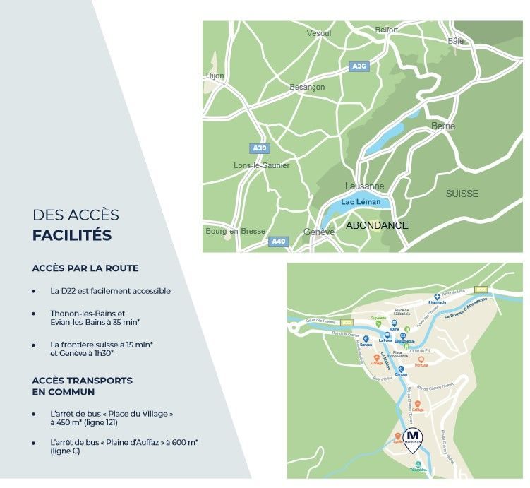 Accès : À 22 min du centre de Genève avec le Léman Express et à 30 min d'Annecy. À proximité immédiate de la nouvelle gare d'Annemasse. Le poste de douane MON IDEE se situe à 800 mètres du projet. Lignes de bus à haut niveau de service (BHNS), tramway, Léman express.