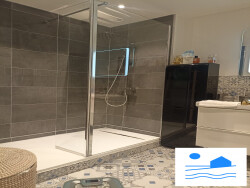 Entrée avec verrière, grande pièce de vie avec cuisine moderne équipée, quatre belles chambres, deux salles de douche, des toilettes et des rangements...Une cave complète cet appartement.