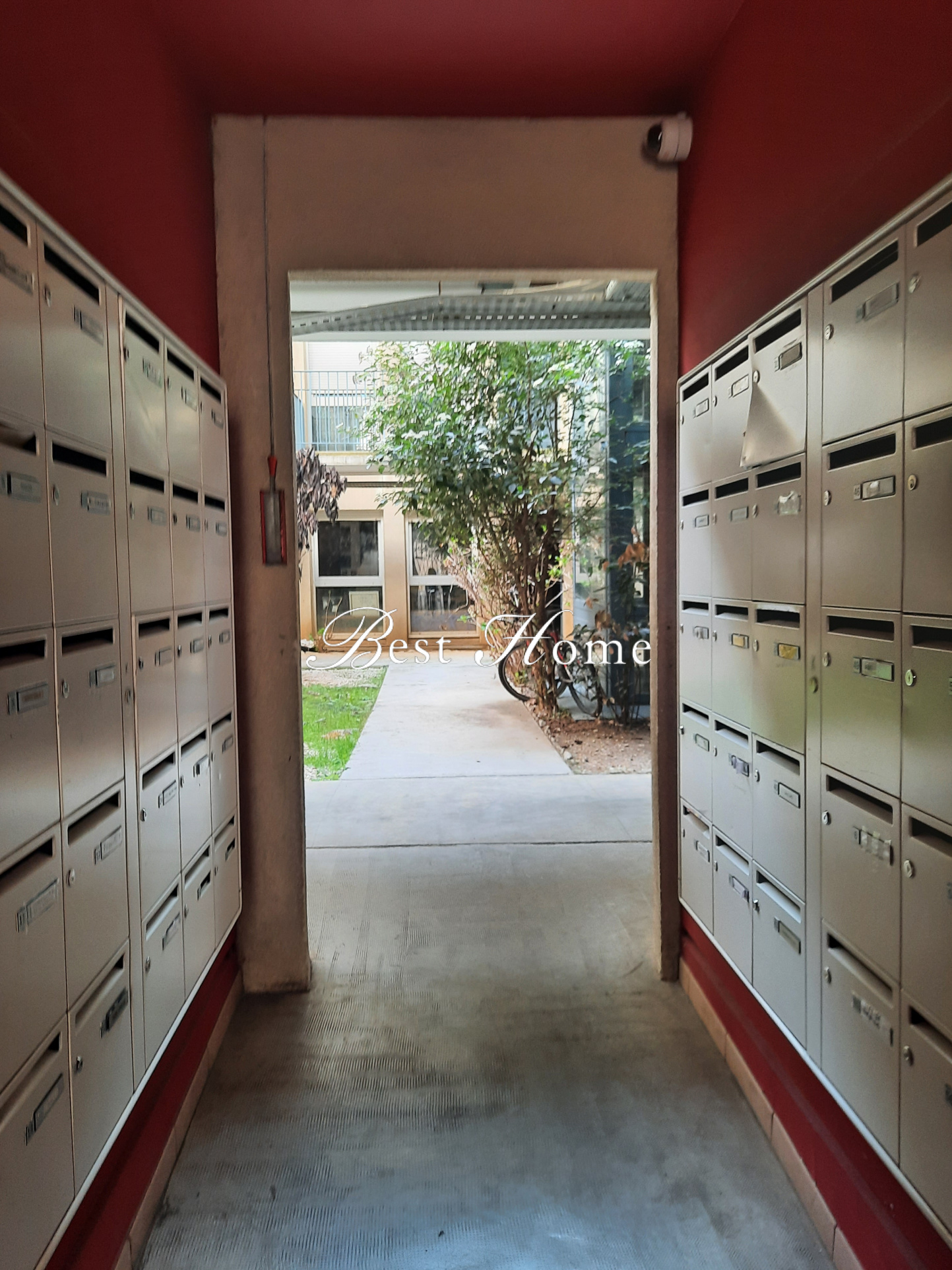 Situé à 300m de l'église SAINT BAUDILE, il se situe au 1er étage de cet immeuble à l'allure d'une hacienda espagnole, toute en pierre apparente.
