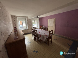 Maison semi individuelle comprenant une entrée desservant salon, salle à manger, cuisine, chambre, arrière cuisine pour le rez-de-chaussée A l'étage un palier donnant accès à une chambre ainsi qu'un grenier aménageable. Terrasse, bâtiment et terrain clôturé.