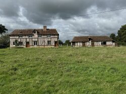 MEZIDON VALLEE D'AUGE Secteur Saint Julien Le Faucon Propriété de 43ha d'herbages dont 10ha de verger (possibilité moins), comprenant: Une maison d'habitation à colombages restaurée d'environ 140m²: RDC: salon, grande cuisine, bureau, cellier, buanderie et wc. Etage: couloir, 3 chambres, petite chambre ou bureau, salle de bains et wc. Ancien pressoir de 130m² Anciennes écuries de 75m² Bâtiment à colombages de 180m² Hangars de 160m², 200m², 350m², 520m² Autres bâtiments divers Achat de matériel et fourrage en plus Anthony JAN 06.72.15.80.46