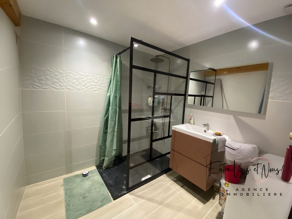 Elle se compose au RDC d'une entrée, un séjour de 35 m², cuisine aménagée et indépendante, buanderie, salle de douche et toilettes; à l'étage deux chambres spacieuses et lumineuses, les ouvertures sont en bois/PVC double vitrage avec volet électrique.