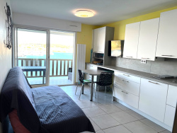 Magnifique appartemement avec une vue panoramique 3 pièces de 47 m2 de surface habitable entièrement rénové situé sur l'Île des pêcheurs, au 3ème étage avec ascenseur dans une résidence sécurisée avec piscine, pataugeoire, boulodrome, jeux pour enfants, tennis, composé d'un séjour, coin cuisine d'une belle chambre avec un couchage pour 2 personnes, d'une seconde chambre avec 2 lits superposés, d'une salle d'eau avec douche wc séparés. Climatisation. Beau balcon de 10 m2 en 1ère ligne port. Possibilite de garage en sus. Plage et Falaises à 5 minutes à pied, commerces sur place, Port à 10 minutes à pied. Possibilité d'un garage double en sus. Les informations sur les risques auxquels ce bien est exposé sont disponibles sur le site Géorisques : www.georisques.gouv.fr