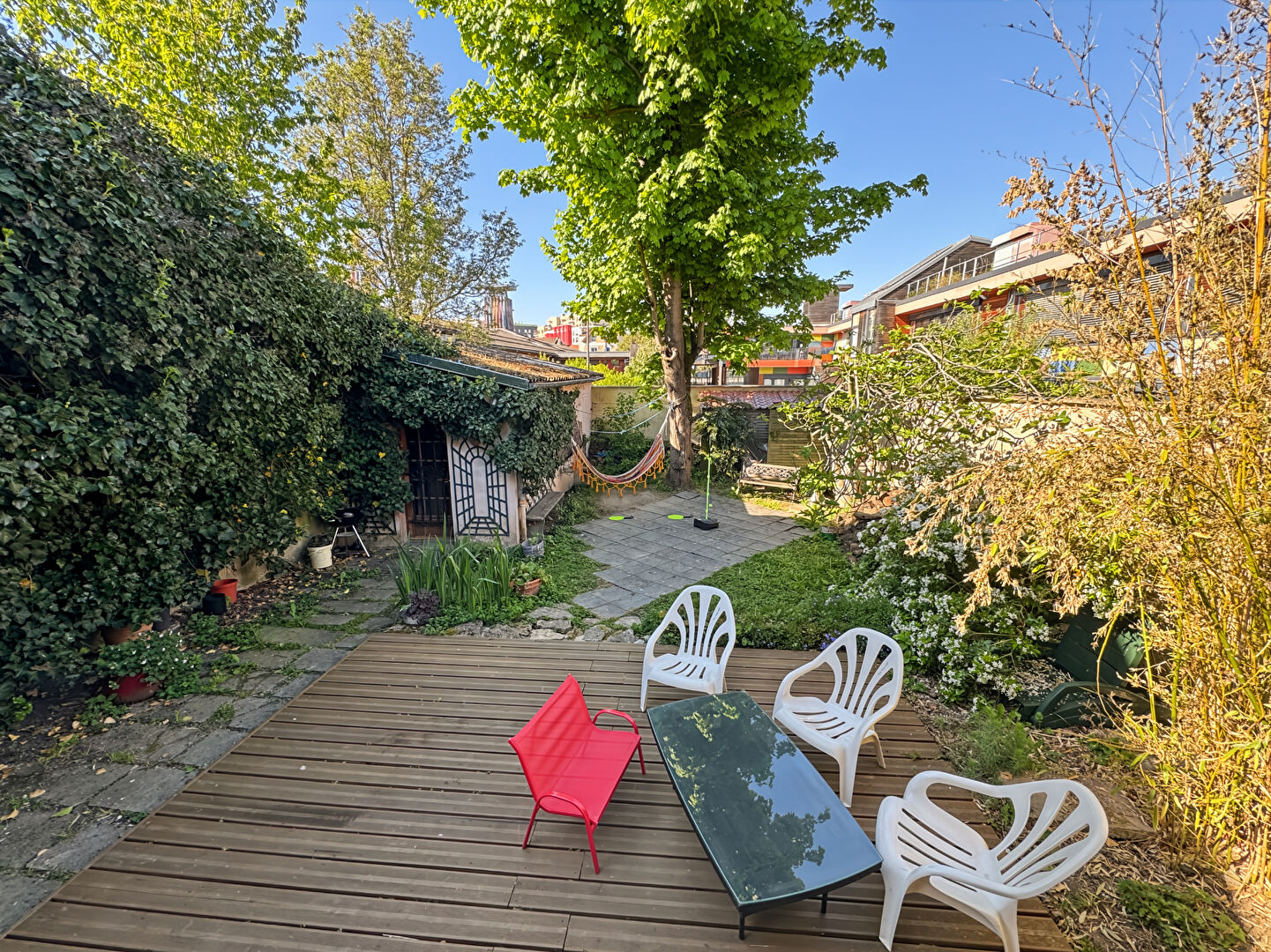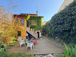 L'ile SAINT-DENIS; Belle maison mitoyenne de 81,7m² carrez (112,46 surface habitable avec sous-sol) avec beau jardin fruitier de 37m². Au calme dans une impasse, dans un environnement paisible, cette maison se compose d'une entrée, un séjour de 16,56m², une cuisine indépendante, a l'étage 1 2 chambres et wc indépendants, a l'étage 2, une chambre et une salle de bains, et dressing, et un grand sous-sol, et un jardin.
