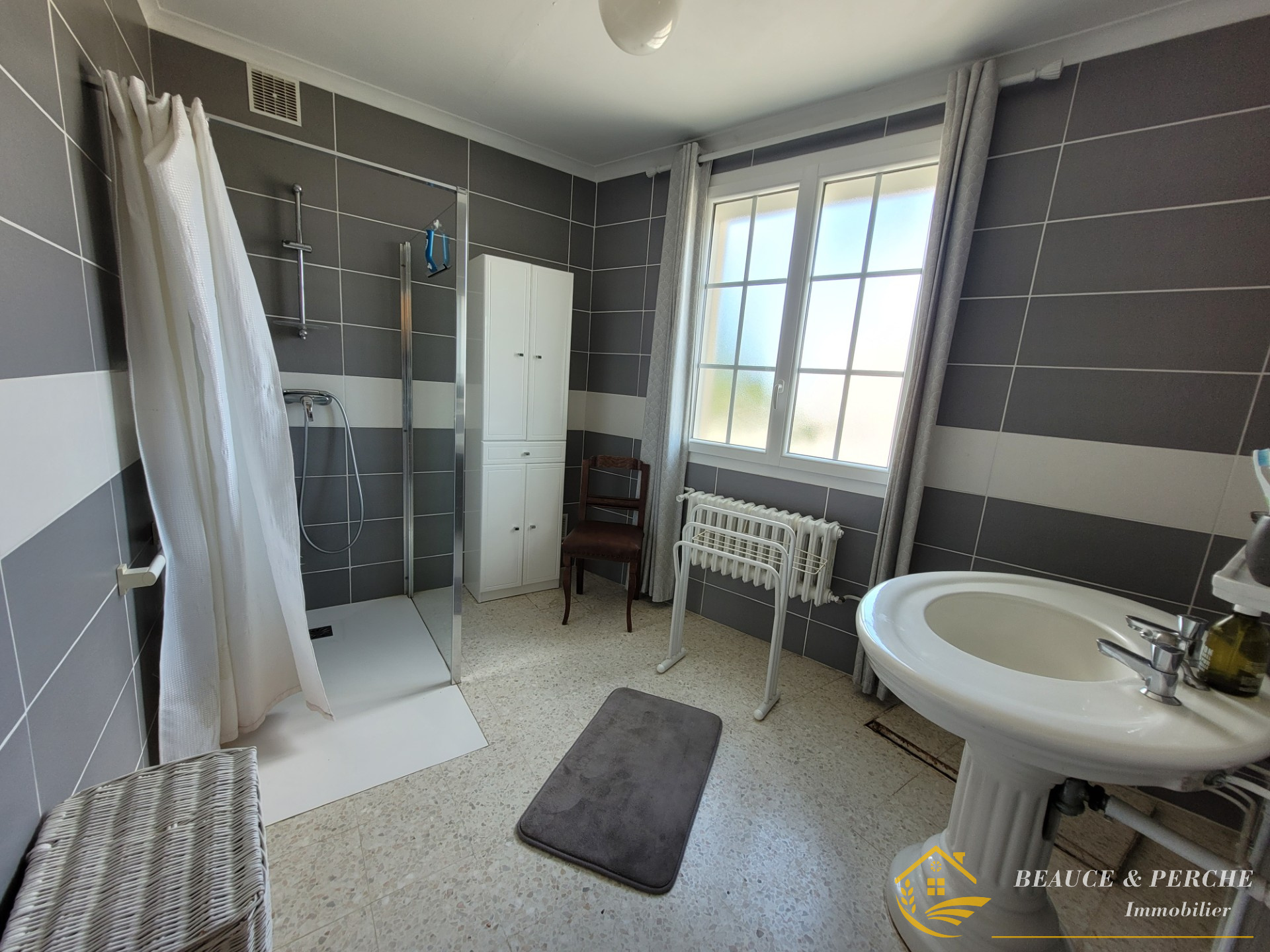 Solide pavillon des années 60 sur sous-sol complet. Comprenant au rez-de-chaussée, une entrée séparée avec dégagement, une cuisine aménagée équipée, un salon séjour avec cheminée ouverte, trois chambres dont une avec point d'eau, un bureau, une salle de bains, un toilette séparé. Sous-sol avec deux garages, atelier, cave, petite pièce aménagée. Le tout sur un grand terrain partiellement clos de plus de 7000 m2 avec accès au Loir.