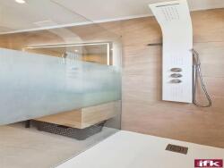 ?Une salle de bain avec douche à l'italienne et double vasque