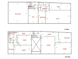 Au rez-de-chaussée vous trouverez le couloir d'entrée. L'escalier en pierre avec sa rampe en fer forgé et bois vous mène au premier étage. Ici sont disposés une cuisine, une arrière-cuisine, un WC et une salle à manger. S'y trouve aussi un vaste salon avec pierre au sol, cheminée design et une grande baie vitrée donnant accès à la cour.