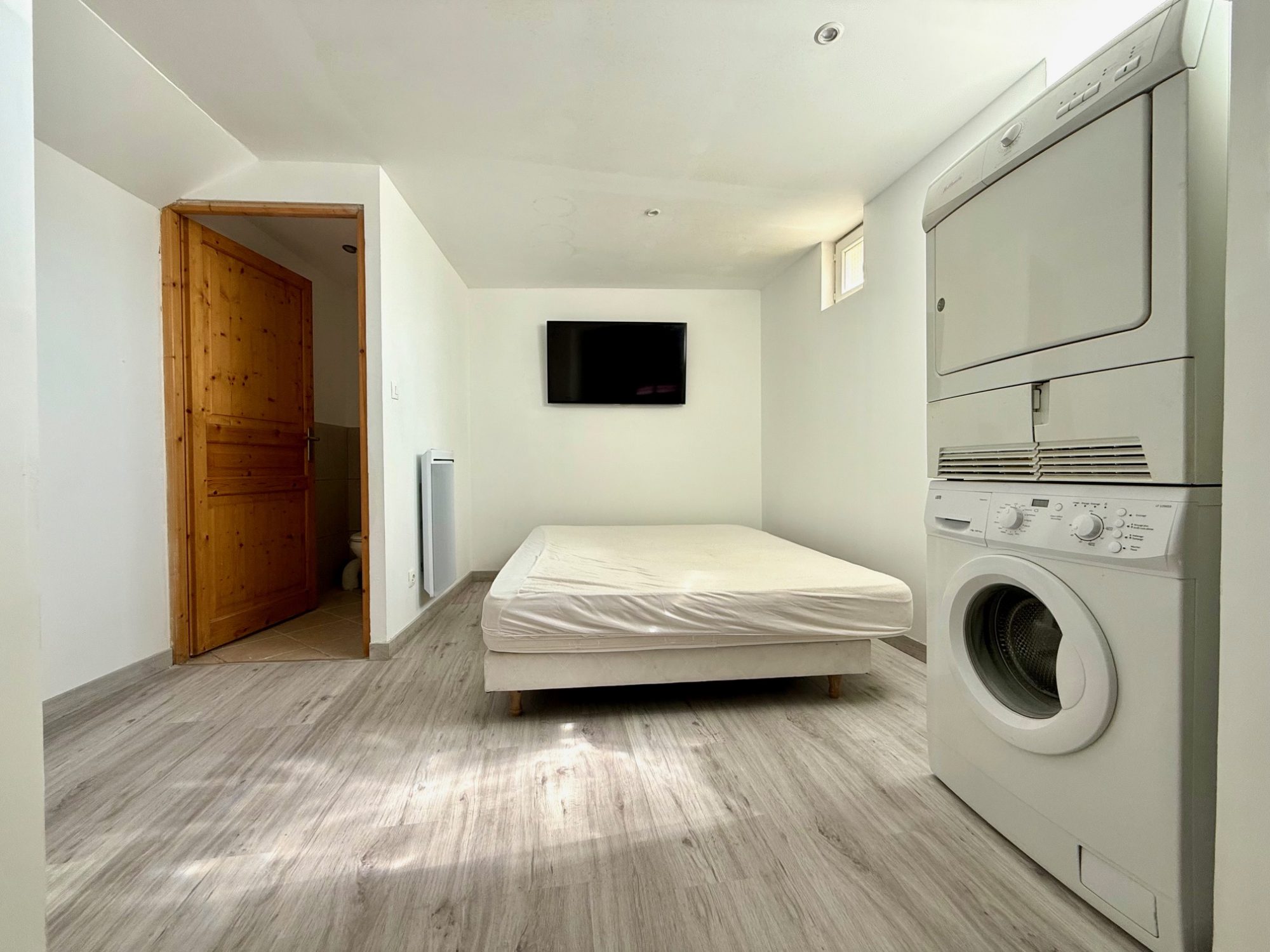Par une entrée privative un T2 d´environ 35m2 libre d'occupation à la vente Comprenant une pièce de vie ouverte de 15m2 avec coin cuisine équipée , un cellier de rangement À l'étage un bureau de 4,45m2 surface carrez , une salle d'eau avec Wc , et une chambre de 12m2 surface carrez