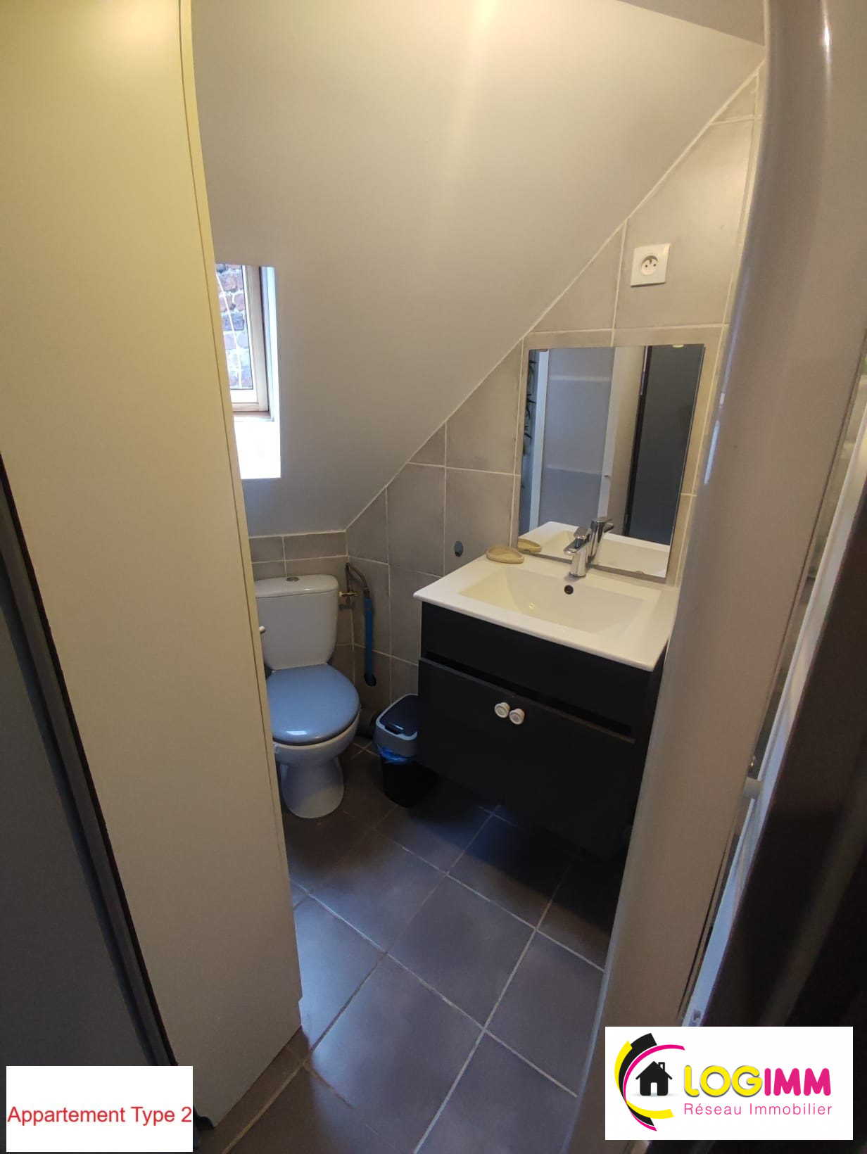 A l'étage: - Studio d'environ 28m2 comprenant une cuisine, une pièce de vie, une salle d'eau avec wc et une chambre mansardée actuellement loué 600E charges comprises