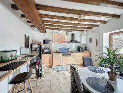 À l'étage : un second appartement de 77 m², loué, disposant également d'une cuisine ouverte sur séjour, deux chambres, une salle d'eau et un WC.